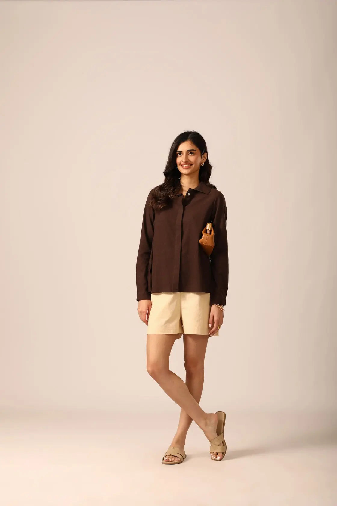 Experience effortless style with this breathable, lightweight linen shirt in a rich espresso shade. Featuring a classic button-down design and relaxed fit, it’s perfect for both casual and polished looks. Comfortable and versatile, it’s a wardrobe essential for all seasons.